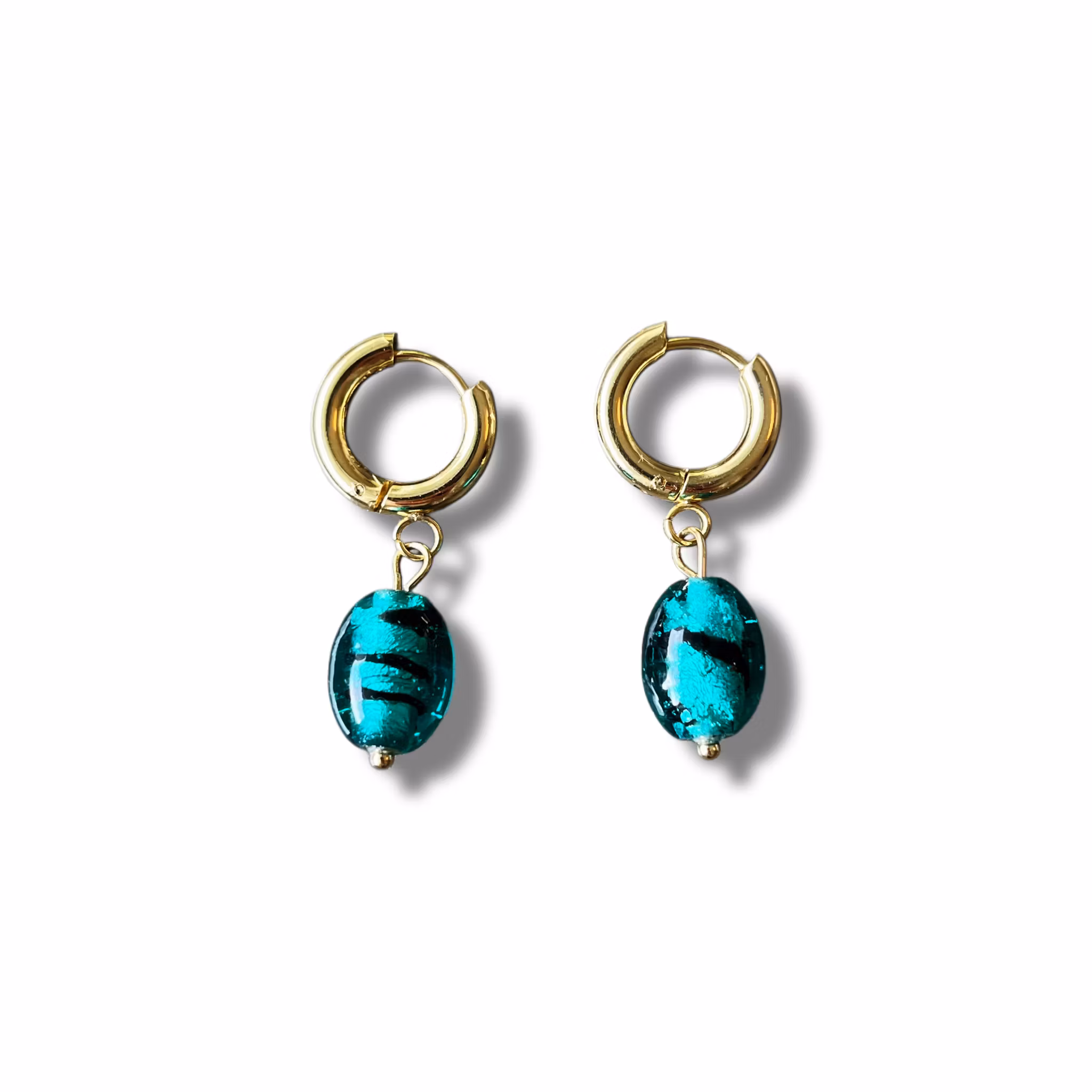 Handgjorda örhängen utav återbrukade glas. Creolerna är gjorda utav rostfritt stål och är nickelsäkra. Varje produkt från ÅTERBRUK kollektionen är unik och det finns bara 1-2 exemplar utav varje smycke. Eftersom smyckena är gjorda utav second hand smycken/pärlor kan det förekomma lite skavanker, men det tillhör charmen.