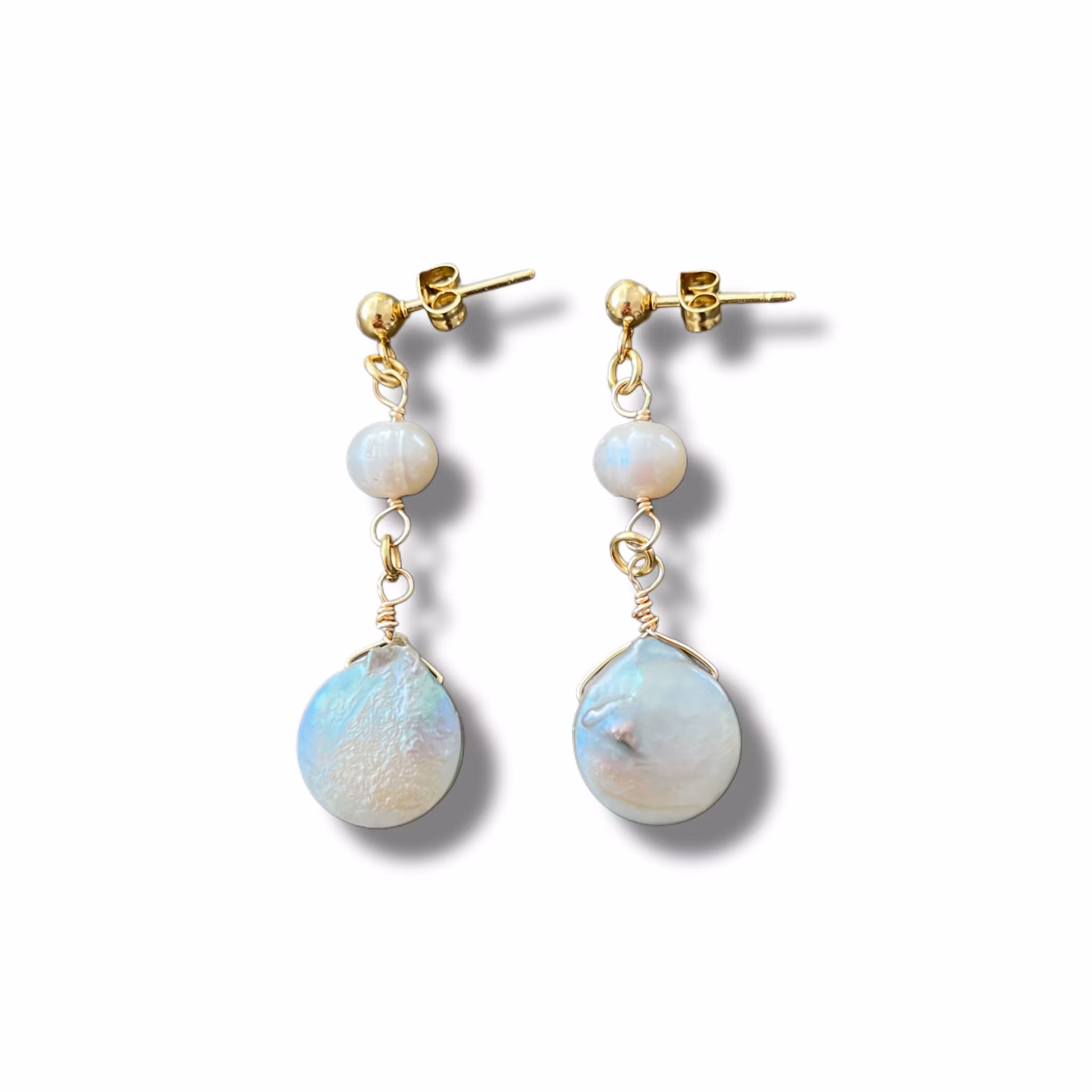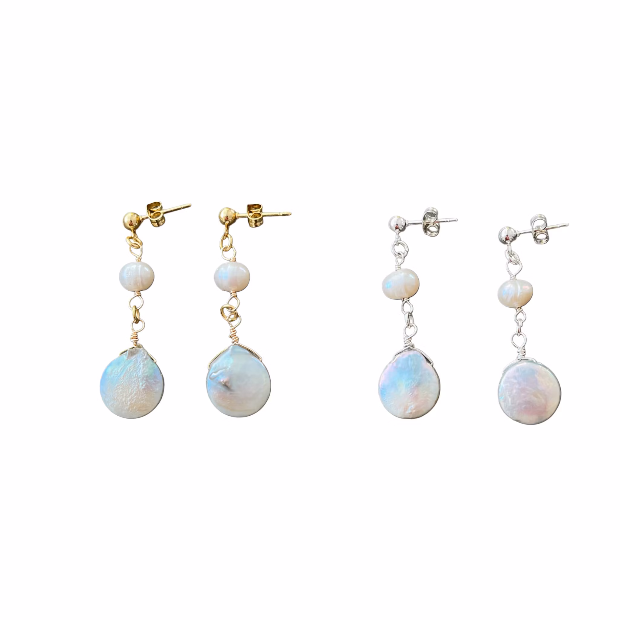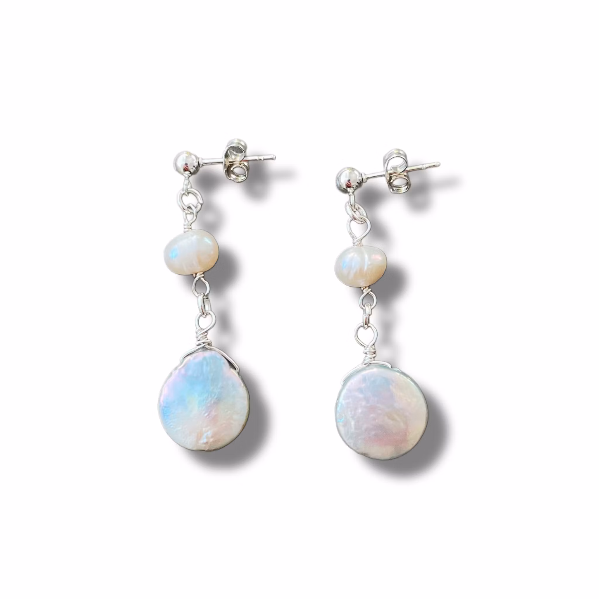Handgjorda örhängen inspirerade av havet och sagoväsendet ”Siren”. Örhängena består av 2 olika sorters sötvattenspärlor. Båda är återbrukade. Sötvattenspärlor är unika av natur så det kan förekomma olikheter i nyans/form/storlek. Stiftörhängena är gjorda utav rostfritt stål.