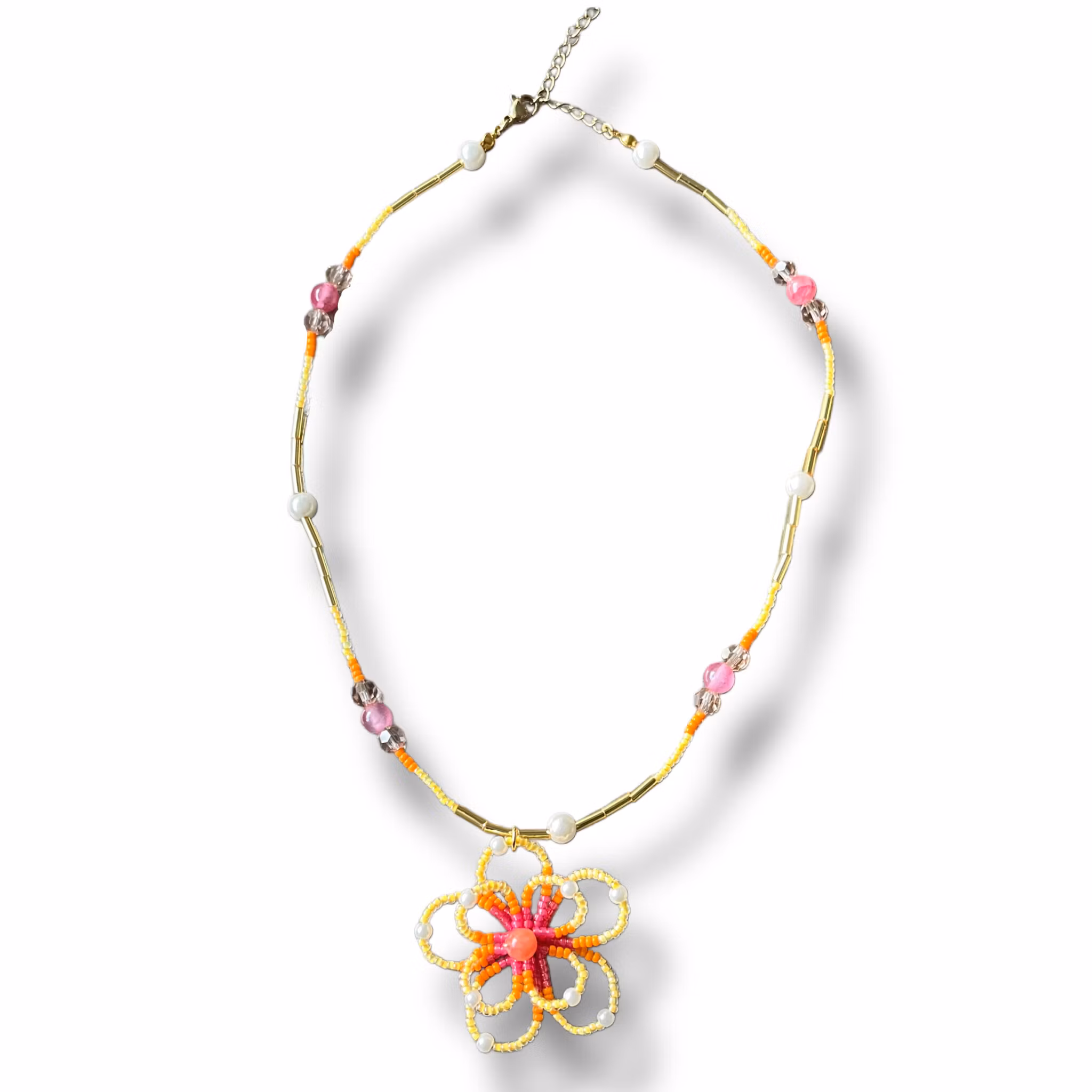 Handgjorda halsband inspirerade av låtarna från Zara Larssons album MIDNIGHT SUN. Blomman är handgjord utan Miyuki pärlor och metalltråd. Halsbandet är gjort av olika sorts pärlor och nylontråd.